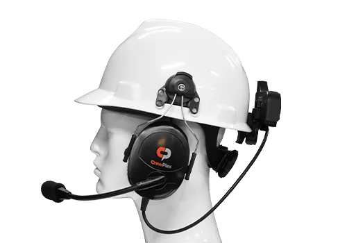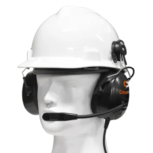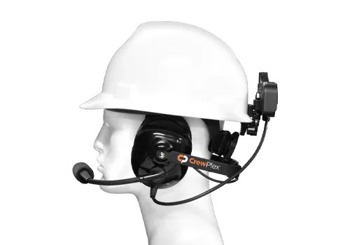 The dual-ear under the helmet headset provides noise reduction in demanding and high-noise environments where the use of hard hat or safety helmet is required. Ideal for applications such as construction, manufacturing, and public works, or anywhere communication is critical. The hard hat helmet headset is compatible with all CrewPlex beltpacks. This headset has a Noise Reduction Rating of 23 dB.