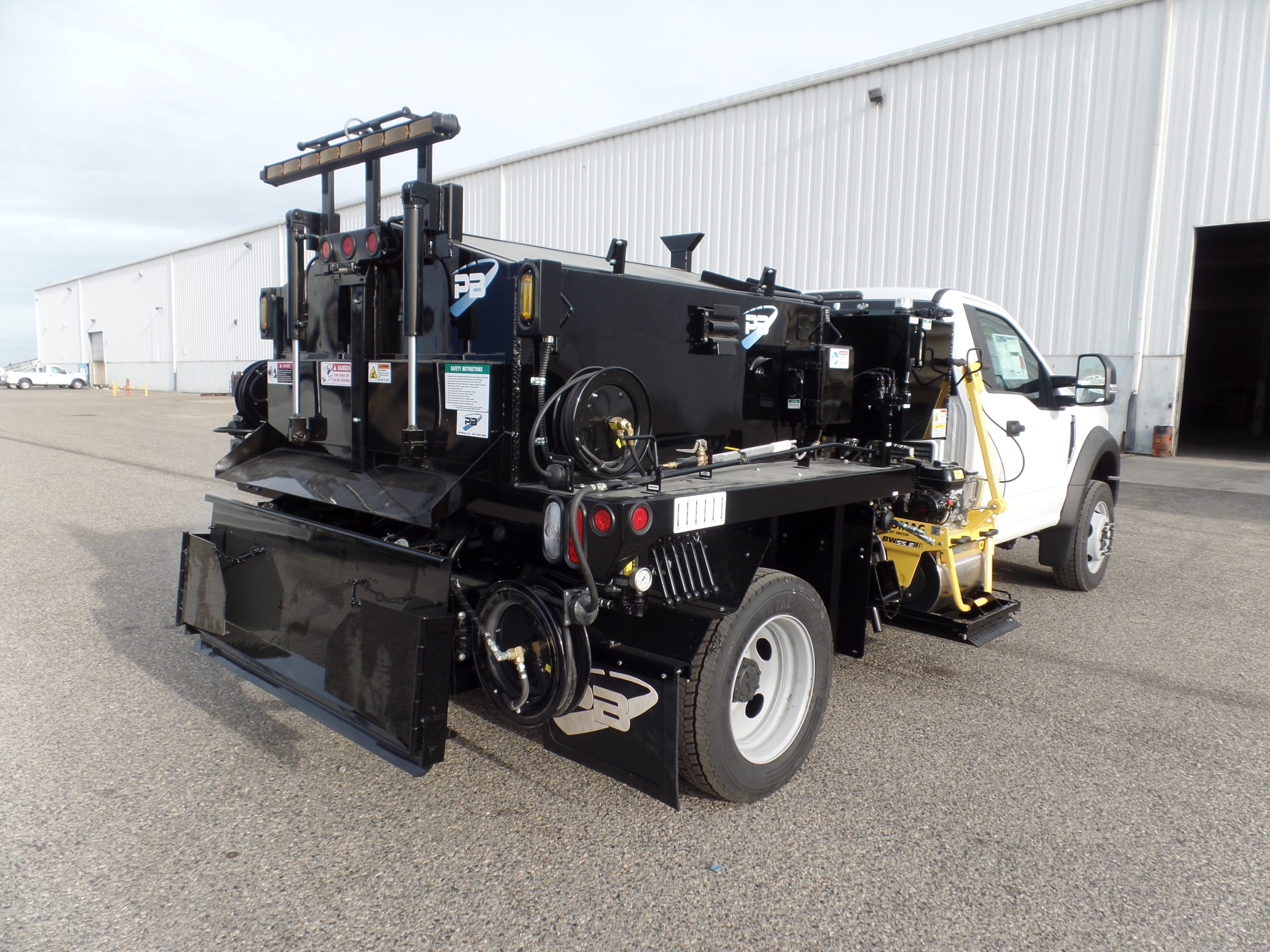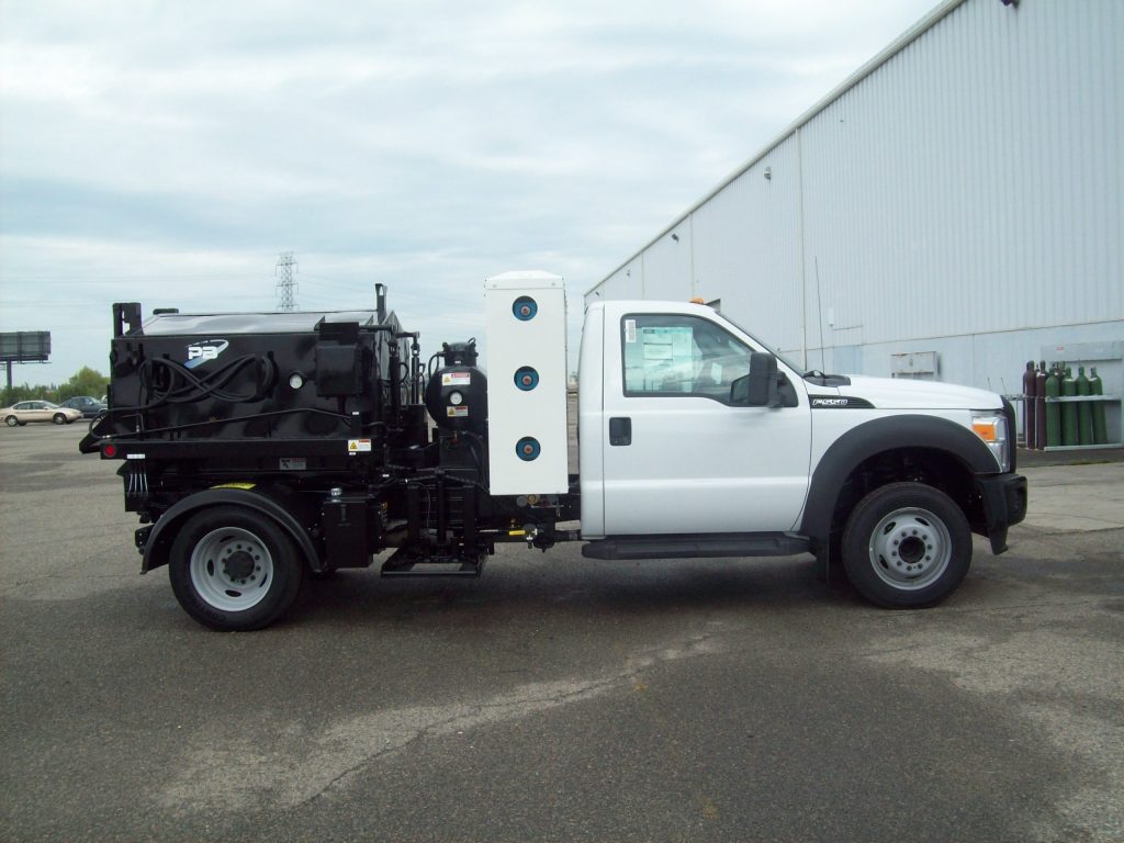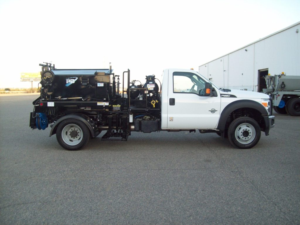 The Model B 1.5 patcher is a high quality product attached to truck beds and can be easily elevated to allow for greater overall coverage on the areas being repaired.
