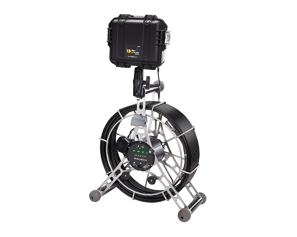 This push camera inspection system can inspect sewer and lateral lines up to 12”diameter. It has 200’ of push cable mounted in a stainless steel reel and frame, 8.4” LCD daylight readable monitor, Qwerty keyboard for data entry, SD card recording up to 20 hours, lithium ion battery with charger, and 2.17” dia self leveling color camers.