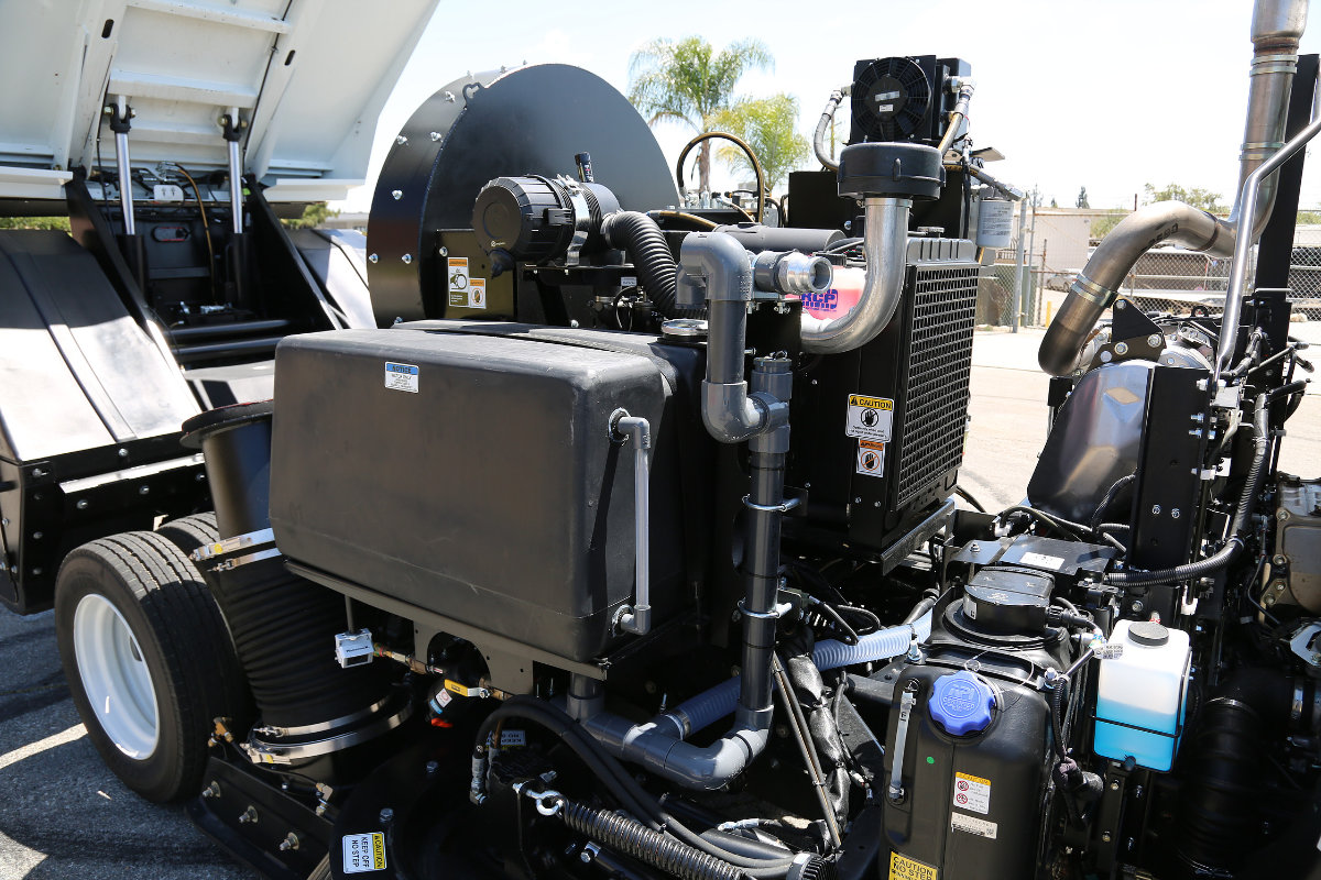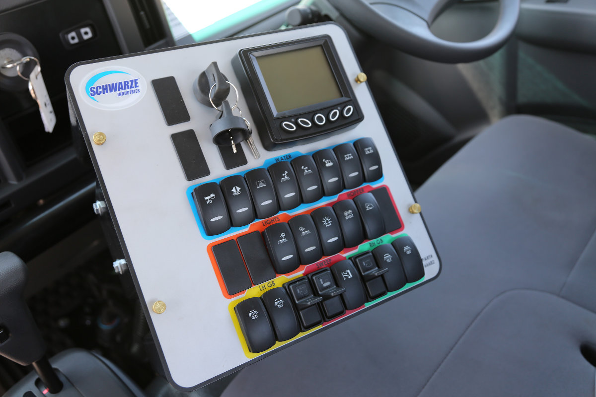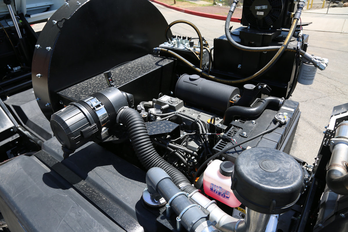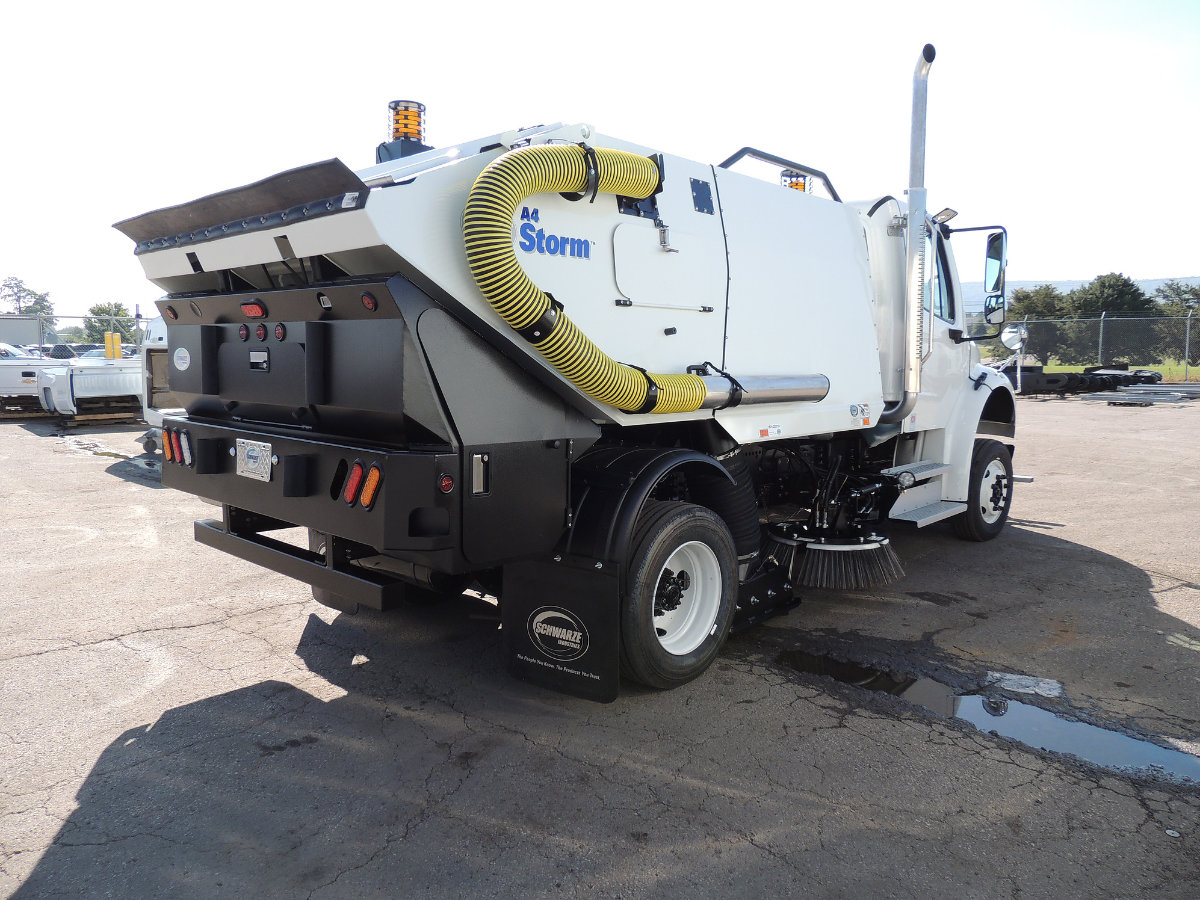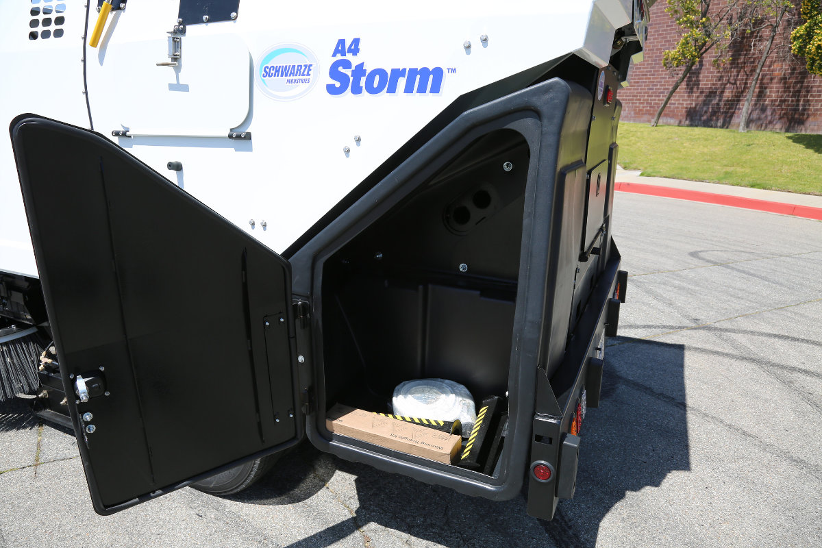 The enhanced A4 Storm has a large, full-size, high-performance sweeping head and fan system and features large, corrosion-resistant polymer tool boxes. Its standard water system of 130 gallons can be supplemented with an optional additional 66-gallon tank, taking the unit’s capacity to 196 gallons.