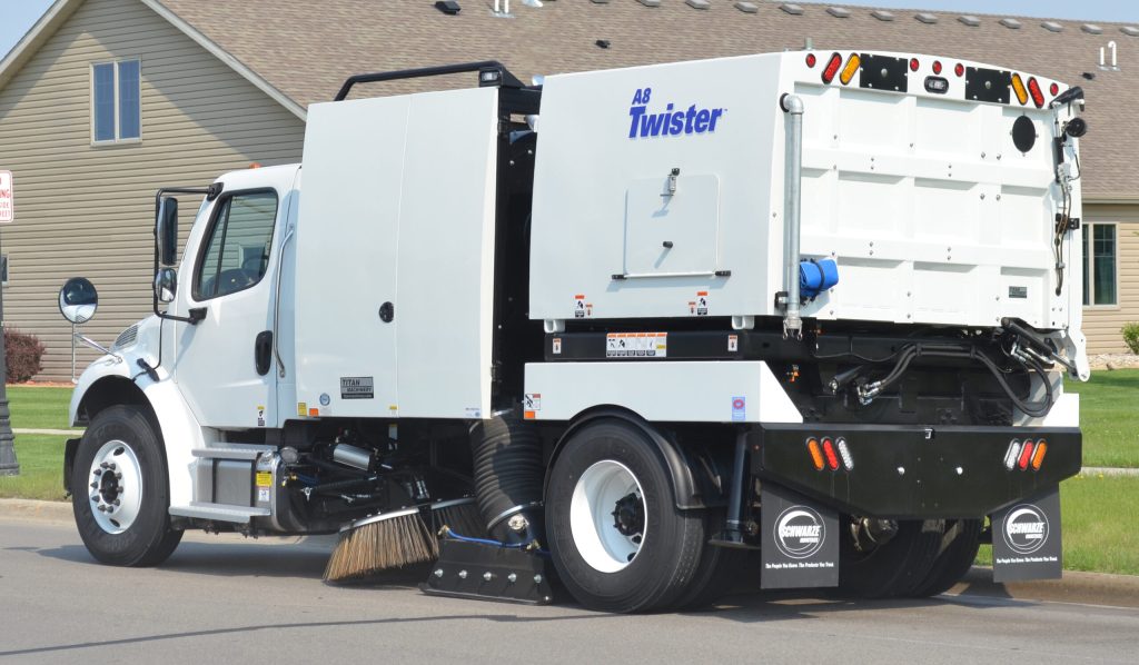 The Schwarze A8 Twister SE has no performance compromise from its twin engine version and can perform most typical sweeping at a low single engine speeds allowing for low noise and operational costs. When full power is needed for heavy jobs like construction and spring cleanup the A8 Twister SE comes through with the same amount of sweep power available on the twin engine A8 Twister. Designed to operate exactly like the twin engine model, little if any additional operator and technician training is required.
