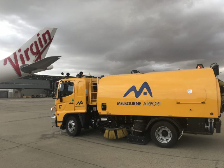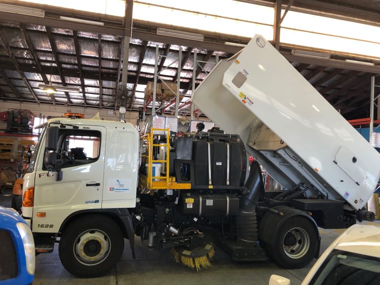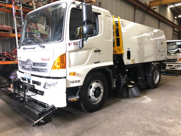 Optional rear lighting including strobes and arrow boards notify traffic behind sweeper